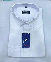 Magnate Slim Fit Men's Formal Shirt – a crisp, tailored white dress shirt designed for a sleek, modern silhouette. Crafted with precision, this slim-fit shirt offers a polished look ideal for office wear, formal events, or business meetings. Packaged in protective plastic with branded labeling, it ensures freshness and quality upon delivery.